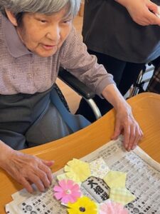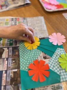 好きな色の色紙をちぎったり、デコレーションシールを貼ったりと