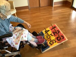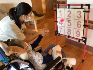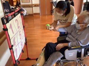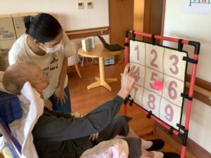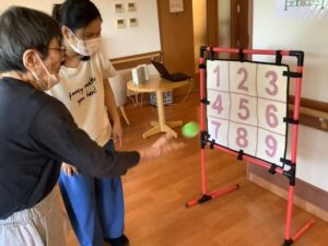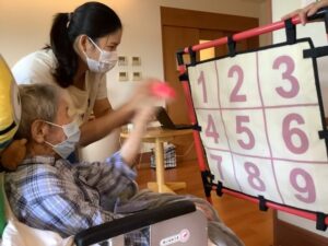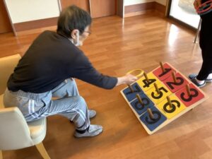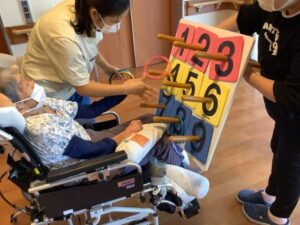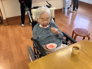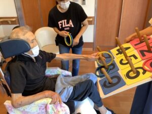 2025.09.22 行 事 暑さに負けない!お祭りレク!! まるで夏?と思うくらい暑い9月🌞 まだまだ楽しめるお祭りレクを開催しました🎉 まずは輪投げとストラックアウトでゲーム大会! 声を掛け合いながら、皆さん真剣に挑戦されていました😁 的に当たると自然と拍手が起こり、笑顔が広がります👏😄 ゲームの後は冷たいかき氷タイム🍧 いちご・抹茶・レモンなどお好みのシロップを選んで 暑さも吹き飛ぶかき氷を楽しみました🍧 夏の名残を感じながら 元気と笑顔で大盛り上がりのお祭りになりました😁