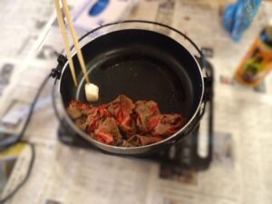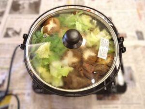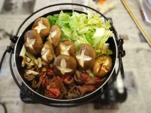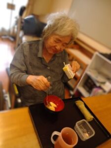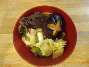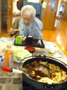 2025.10.12 行 事 すき焼きはやっぱり好きです🥩 寒さが深まる、少し前にフライングですき焼きをしました🥩😄 この写真を見るだけでも、お腹が空いてきますね! 目の前で香る、お肉や醤油の香りが食欲ましましですね!! すき焼きの後にはお口直しの梨をご用意しました🍐 食べづらさがある方はミキサーでジュースにしました😄 まだまだこれからが本格的な寒さになってくると思いますが この季節だからこそおいしい食べ物をたくさん食べたいですね😁