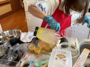 ホクホクの南瓜をミキサーにかけてご利用者様と一緒に作っていきます😄