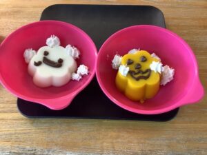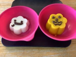 ハロウィンの日に、南瓜プリンとミルクプリンを手作りしました😊