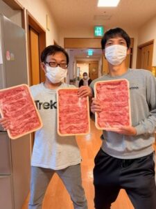 熱々のすき焼きを皆さまで楽しみました。