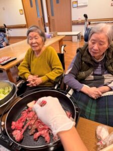 先日、皆さまと一緒にすき焼きレクリエーションを行いました。