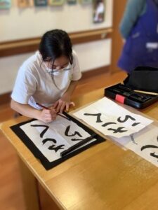 日本の習字は初めてということもあり、最初は少し緊張した様子でしたが