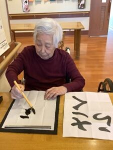 皆さんで教えながら、ゆっくりと筆を動かしていました。