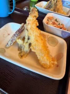 天ぷらは えび・まいたけ・さつまいも の豪華三種類。