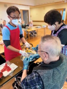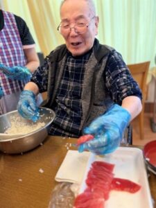 まぐろと玉子の“握り寿司”を、ご利用者様と一緒に握りました!