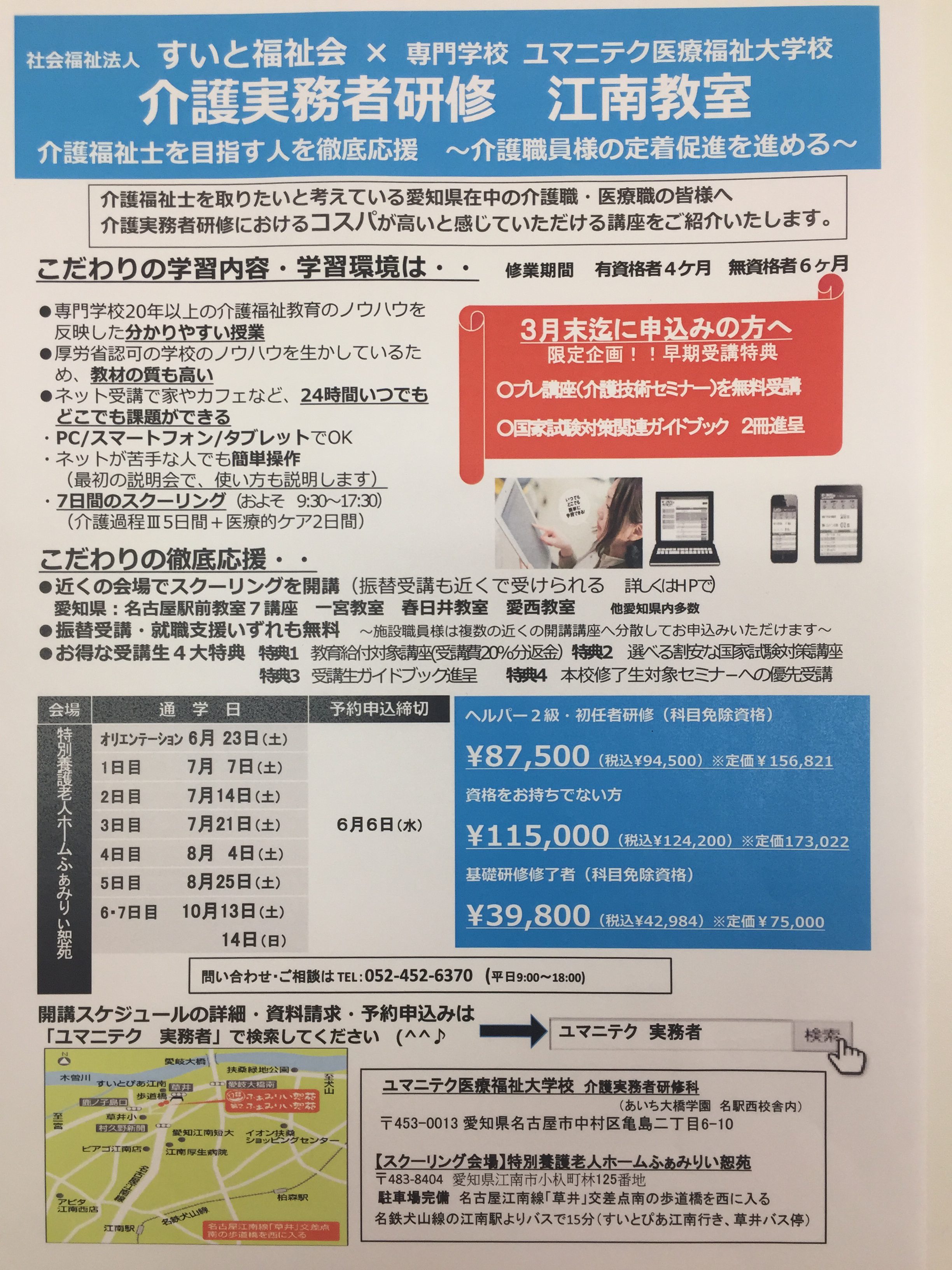 ふぁみりい恕苑ではインフルエンザ流行時期に合わせ